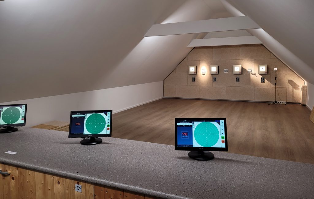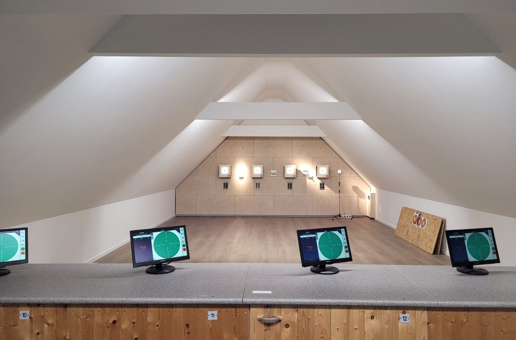 Im 1. Obergeschoss stehen neun elektronische Schießstände für Druckluftwaffen zur Verfügung.