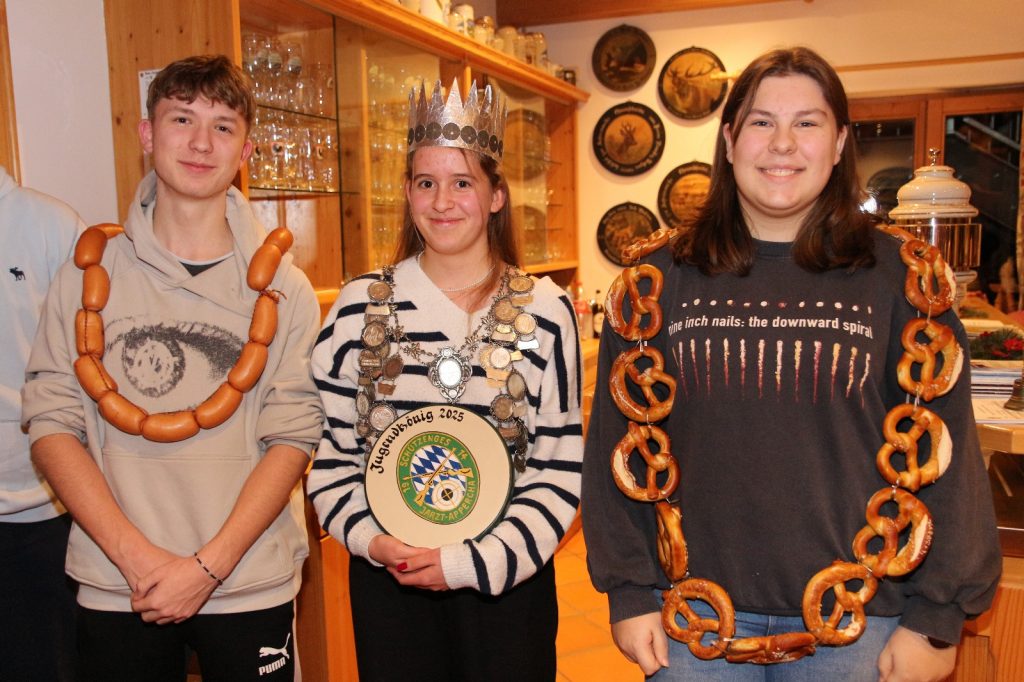 v.l.n.r. 2. Jugendkönig Benedikt Plabst, 1. Jugendkönigin Johanna Schuhmann, 3. Jugendkönigin Elisabeth Graßl